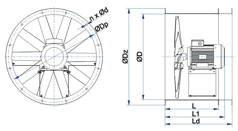 Ventilatoarele sunt reversibile 100% pe aspiratie si refulare, sunt proiectate pentru a vehicula: aer si alti agenti chimici inerti, caracterizate prin randament sporit si fiabilitate la temperaturi ridicate.